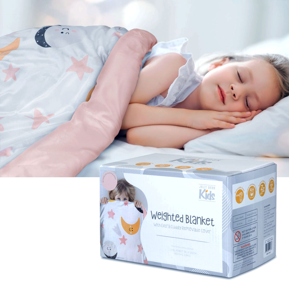 Jelly Bean Kids Adura Pink Kids Weighted Blanket with Extra Cuddly Removable Cover 2.8kg 95 x 125 cm