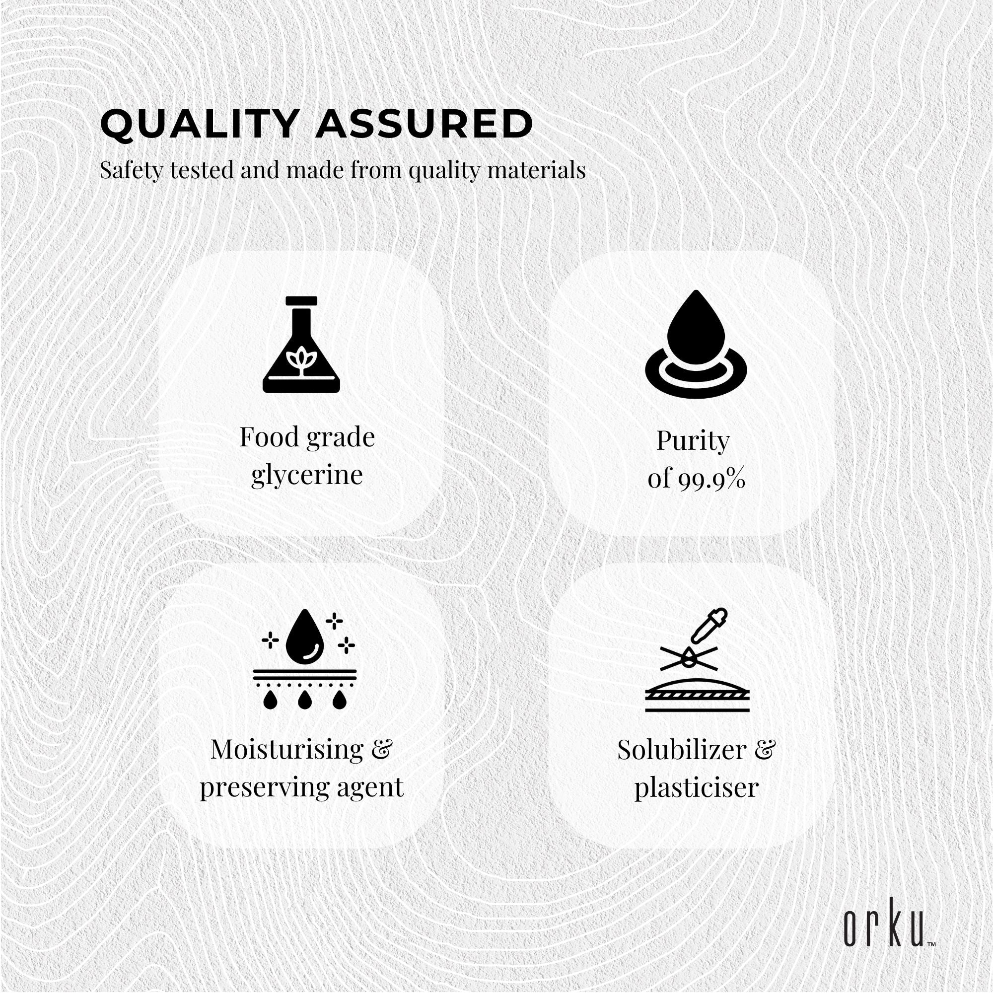 1L Refined Glycerine pharmaceutical (USP) and food grade grade, derived from soybean and rapeseed with a purity of 999.9%.