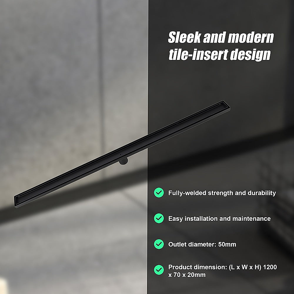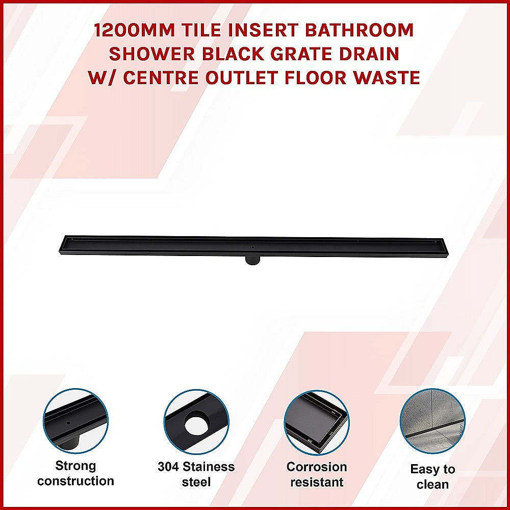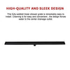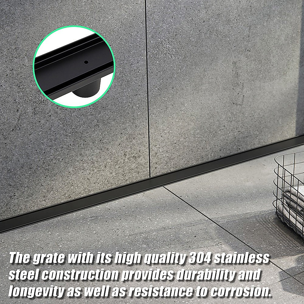 The practical yet eye-catching black shower grate features a frameless design that allows it to be seamlessly inserted into the shower's tiling configuration. The grate with its high quality 304 stainless steel construction provides durability and longevity as well as resistance to corrosion.