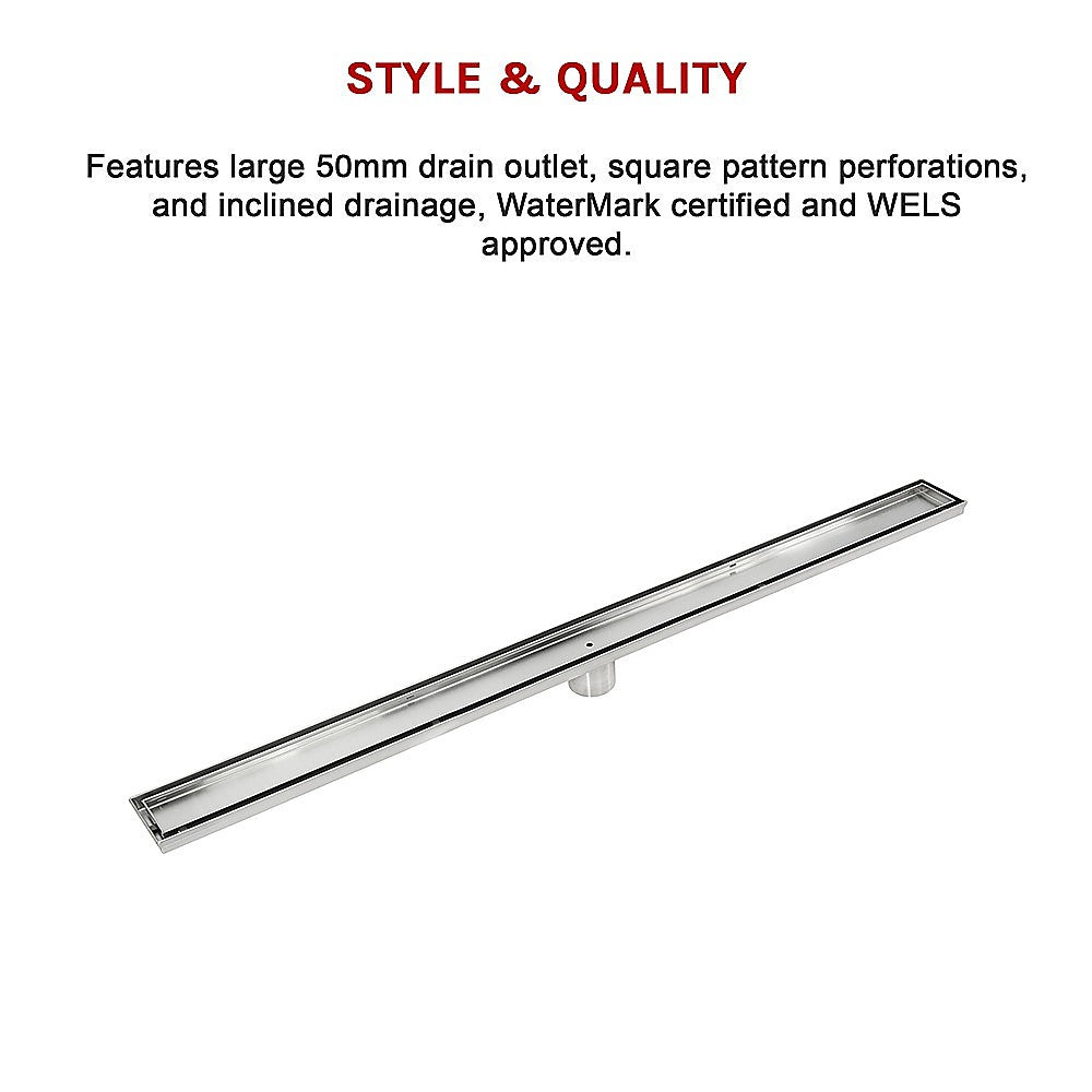 This fully-welded linear shower grate is remarkably easy to install. Cleaning is for easy and convenient , the design forces water to the center drainage outlet. The design forces water to the center drainage outlet. This grate will be a gleaming addition to any bathroom upgrade or renovation. It is fully compliant with Australian standards and is Watermark and CUPC approved.