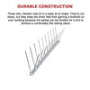 These slim, flexible rods sit in a base at an angle. They're not sharp, but they keep the birds' feet from gaining a foothold on your building because the spikes are too flexible for a bird to achieve a comfortably flat resting place. They're easy to clean and maintain. Simply pull out any debris, such as leaves, that accumulates as the weather changes. And, they're easy to install, making them cost-effective since you'll never need to call a professional installer. They're crafted from durable stainless steel on a tough polypropylene base, so they'll last for years to come. Don't wait for the birds to arrive this spring. Get prepared now with a set of these spikes!