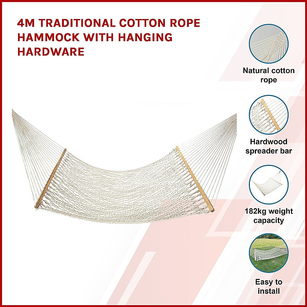 4m Traditional Cotton Rope Hammock with Hanging Hardware