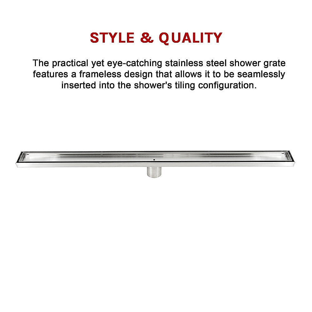 The practical yet eye-catching stainless steel shower grate features a frameless design that allows it to be seamlessly inserted into the shower's tiling configuration. The grate with its high quality 304 stainless steel construction provides durability and longevity as well as resistance to corrosion.