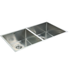 This double sink is made from 1.0mm-thick Type 304 stainless steel with a satin finish for a brilliant look that will last and last. It measures 865 x 440 x 228mm (L x W x D) with 90mm drain openings. Two strainer wastes are included. Sinks are equally sized at 400 x 400mm. Installation is Undermount / Topmount-style.
