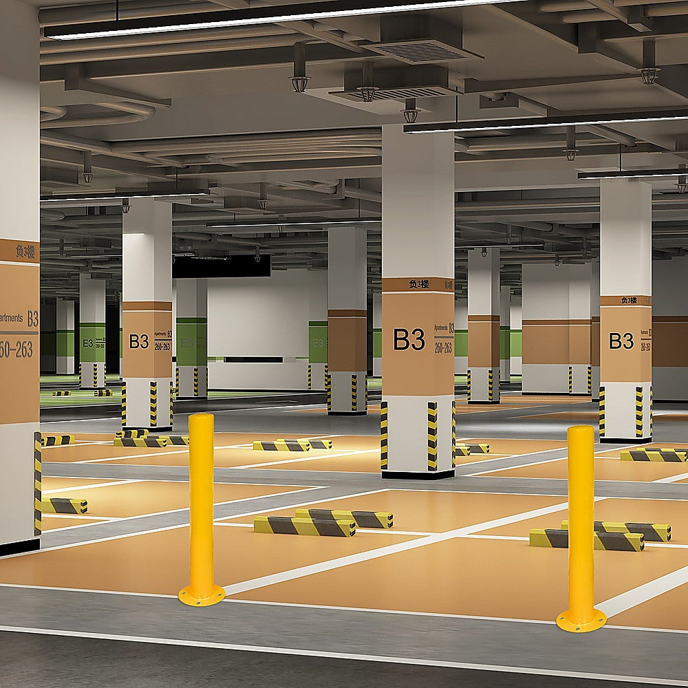 These Safety Bollards feature a heavy duty galvanised post and solid round mounting base plate.
