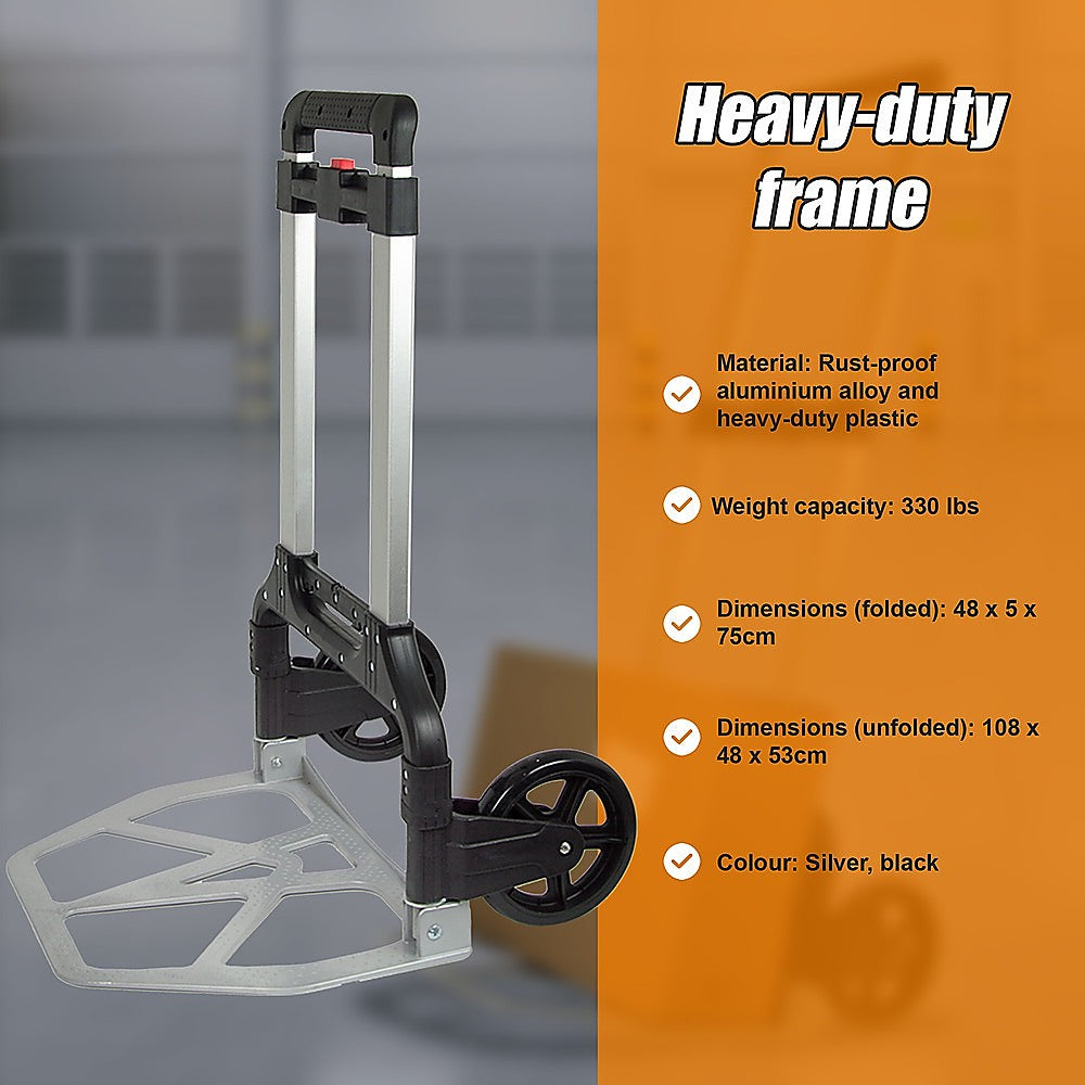150KG Portable Cart Folding Dolly Push Truck Hand Collapsible Luggage Trolley
