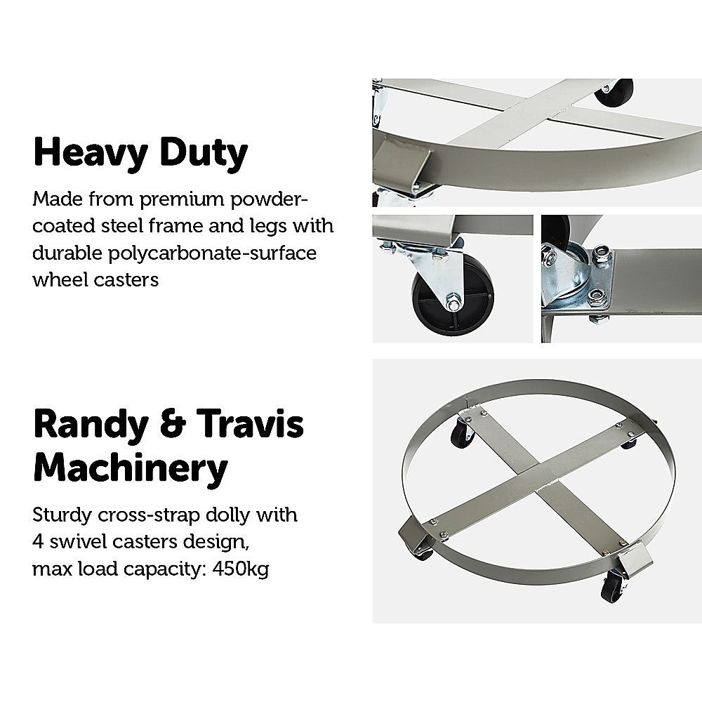 When you need to move heavy drums, you need a drum dolly that's up to the task. This is exactly what you get from the 1,000-pound, 55-gallon drum dolly from Randy & Travis Machinery. With its heavy-duty steel frame and swivel casters, the dolly will help you transport even huge drums with ease.