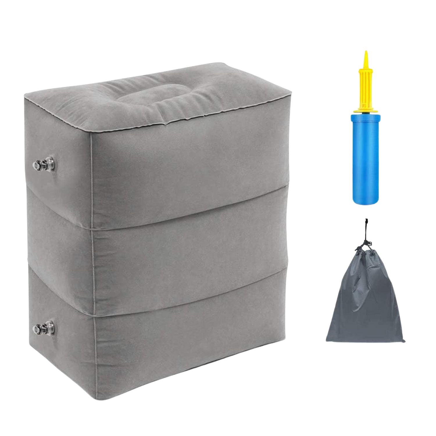 GOMINIMO Inflatable Travel Foot Rest Pillow with Adjustable Three Layers Height (Grey) GO-IFRP-101-TR