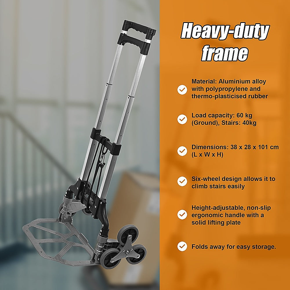 Crafted from only the highest-grade aluminium alloy, this trolley resists corrosion, making it perfect for use even under inclement weather conditions. Take a load off your shoulders and back. Purchase your heavy-duty stair-climbing trolley today.