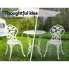 A truly classic design with lots of vintage appeal. Our 3-piece Bistro Set is just perfect to wind back the era with an updated build. Made of cast aluminium with cast iron, the table and chairs set are designed to be rust-resistant with a powder-coated finish. The exquisite floral motifs really help to bring out the iconic character of this wondrous set. Better still, they are made to last with high weight capacities for both chairs and table. The set is suitable for use indoors or indoors. Rubber feet pads are also affixed to its legs to prevent scratches to your pristine deck or floor. Not least, a parasol hole is provided in the table to add a parasol if needed.