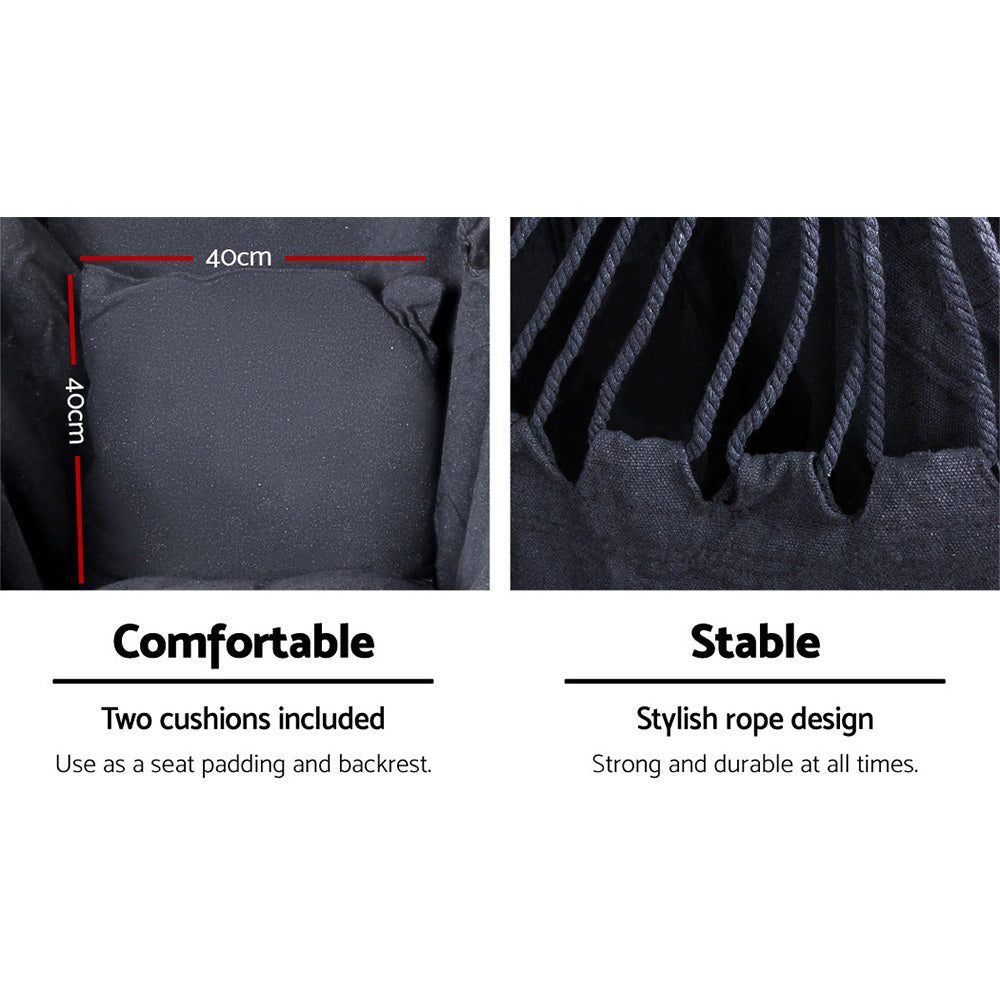 Gardeon hanging hammock chair set is a piece of excellent furniture perfect for outdoor and indoor use. It is made from quality polyester cotton blend fabric and has a solid timber rail for strength and durability, and the powder-coated steel frame is designed to be weather and rust-resistant. Our hammock chair can hold up to 120kg in weight. Plus, it’s easy to install with one single attachment point for absolute safety. This versatile furniture set is suitable to be placed by the poolside, in the backyard, or in any corner of your home. Not least, this chair offers ample support to your body.