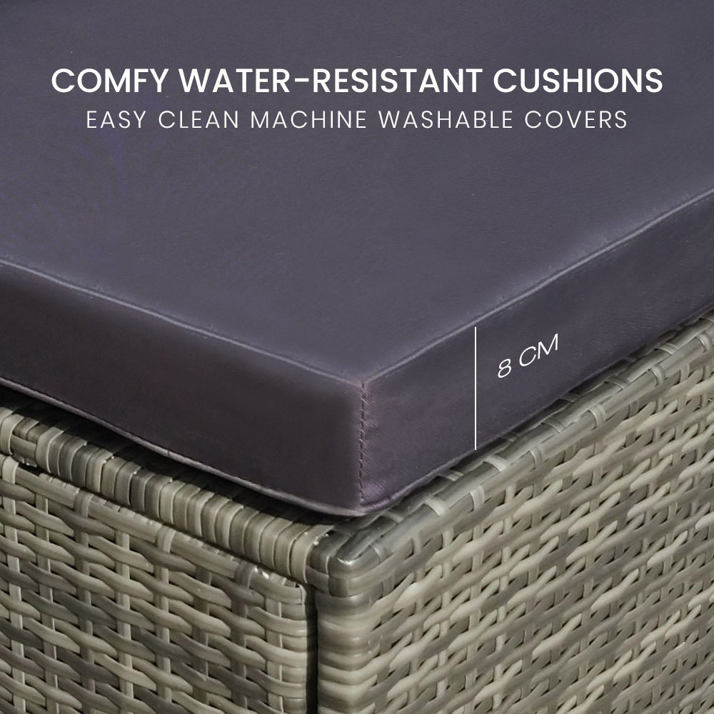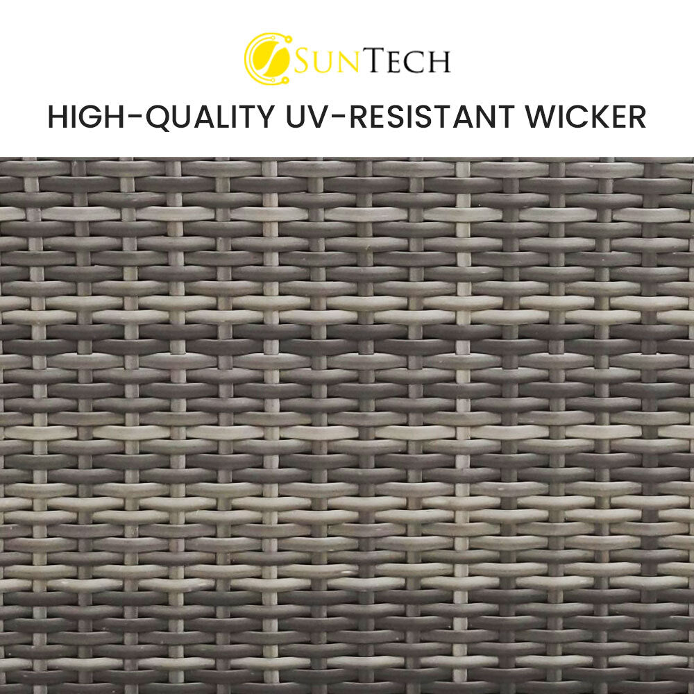 The sofa includes an ultra-comfy 8cm thick water-resistant seat cushion, generous backrest cushioning and a premium throw cushion. The high-quality UV-resistant handwoven Suntech wicker in Marl Grey weave has a premium natural textured look. Mix and match with other London Rattan modular pieces to create your own custom outdoor setting. You can set it up in whatever configuration works best for you, making this London Rattan outdoor corner sofa a great addition to any outdoor space.