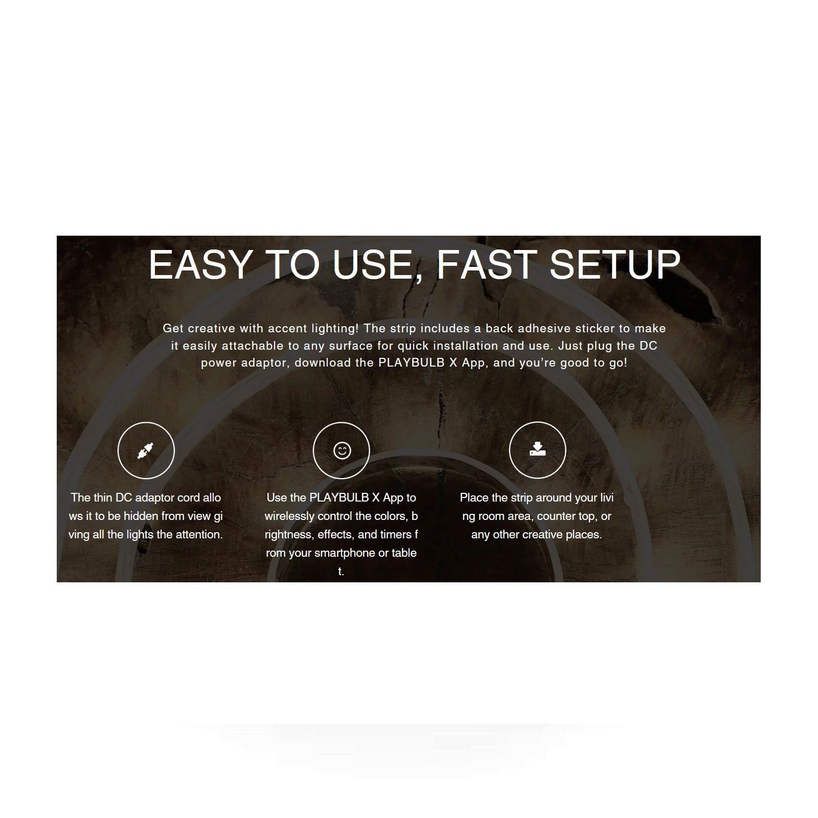 By strategically placing these adhesive LED strips you can re-define areas and objects, making them stand out with a subtle glow.