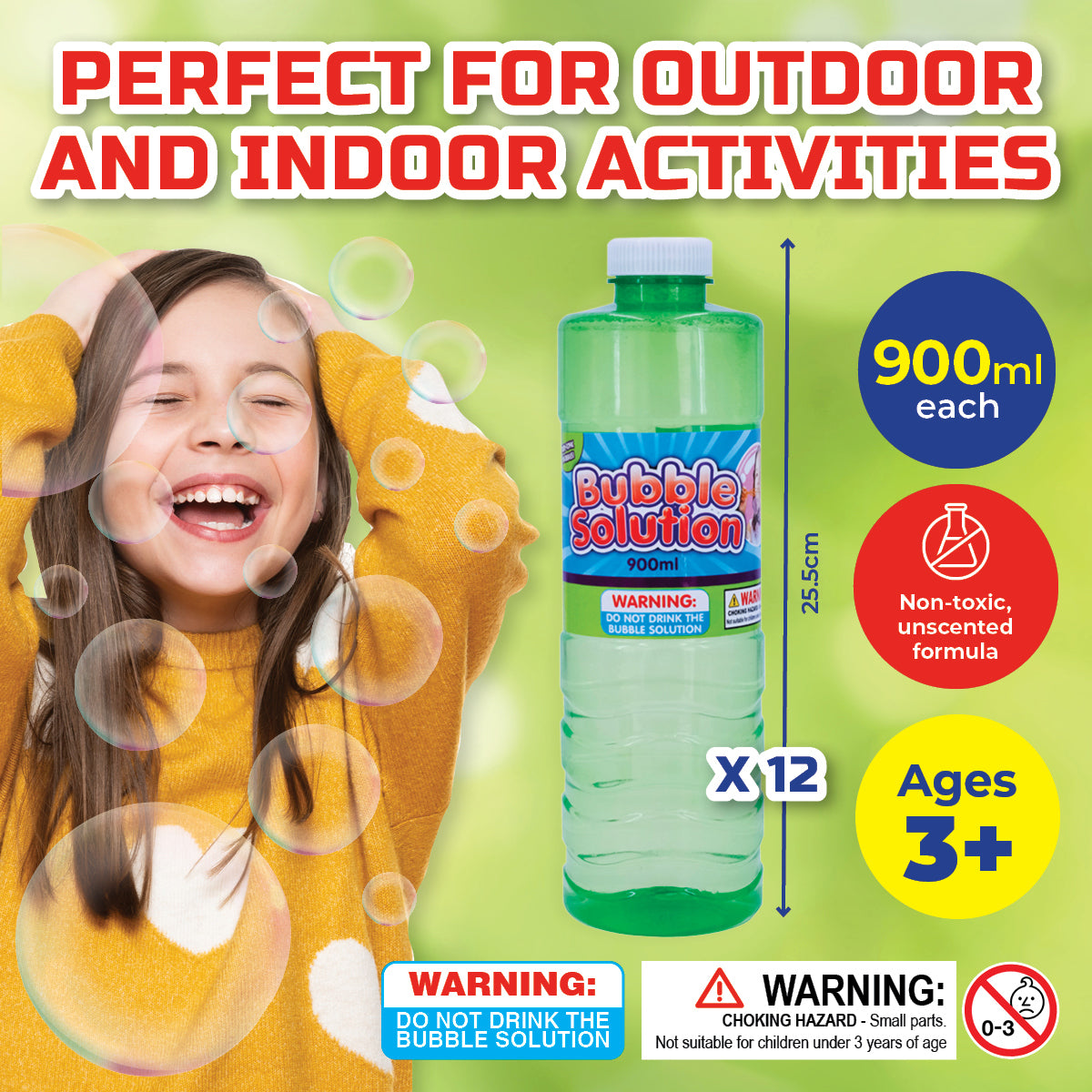 Party Central 12PCE Bubble Solution Non-Toxic Unscented Non-Staining 900ml