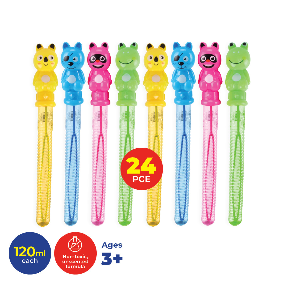 Party Central® Exciting and entertaining, these bubble wands are filled with non-toxic, non-staining and unscented formulas. Available in assorted animal designs, they create endless fun for everyone!