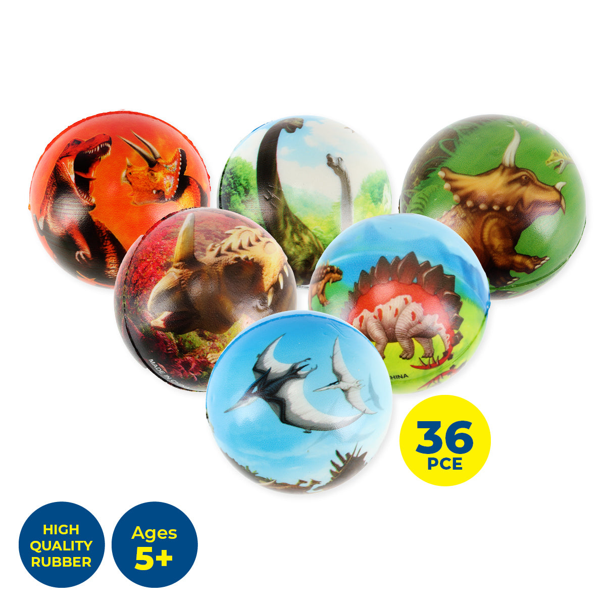 Party Central 36PCE Dinosaur Stress Balls High Quality Rubber Soft Toy 6.3cm