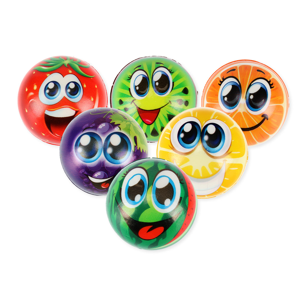 Party Central 36PCE Smiley Fruit Stress Balls High Quality Rubber Toy 6.3cm