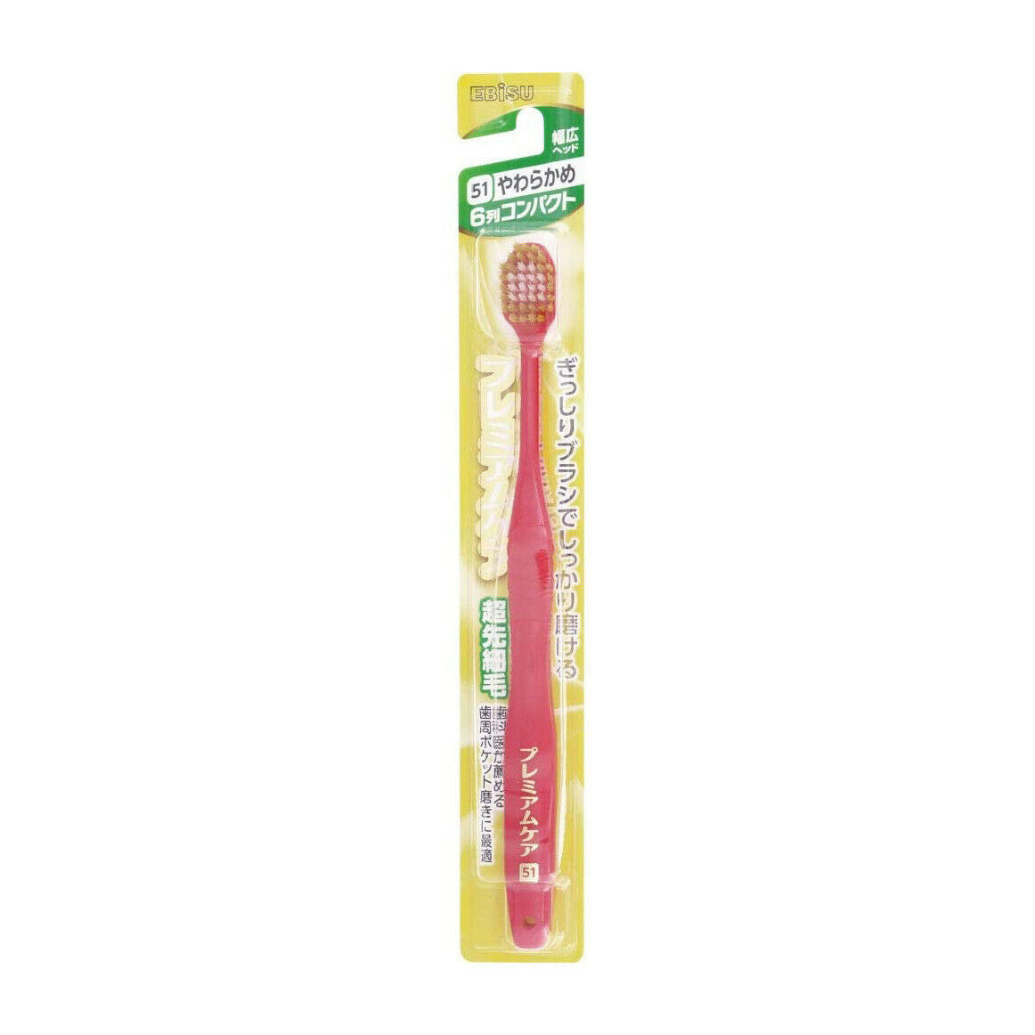 EBISU Premium Care Toothbrush with a soft and firm brush. With 6 rows of wide head, the number of holes is about 1.7 times more than conventional products.