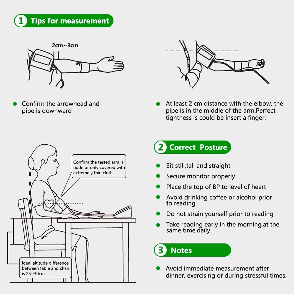 2x90 sets memory function, each measurement result will be displayed on the screen, and automatically stored. This unit has a blood classification index, which could easily check your blood pressure.