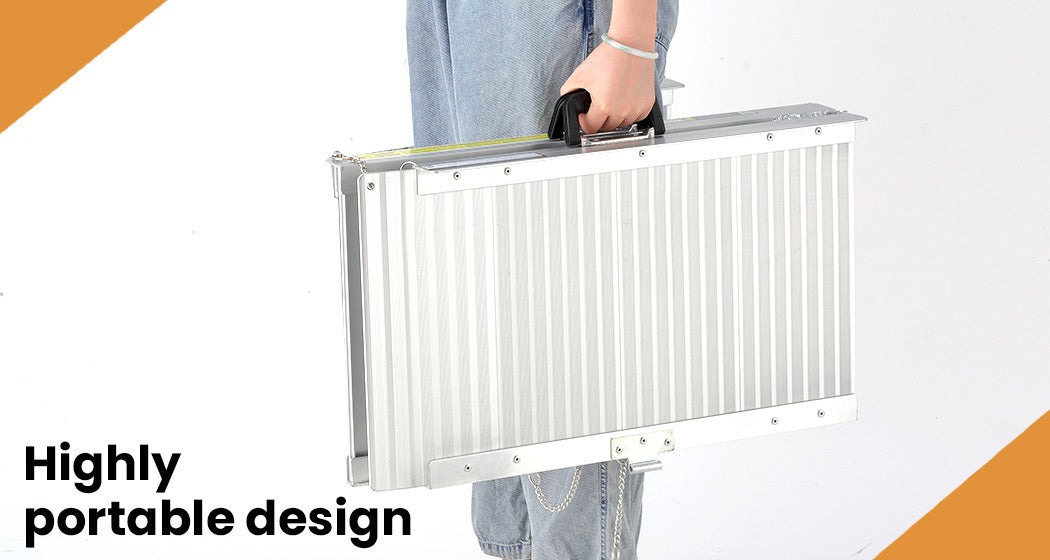 Equipmed Folding Wheelchair Ramps are designed for ease of use and durability. They\'re a smart option to facilitate easy access for wheelchair, mobility scooter and rollator users to overcome steps and kerbs, or for loading into a vehicle.