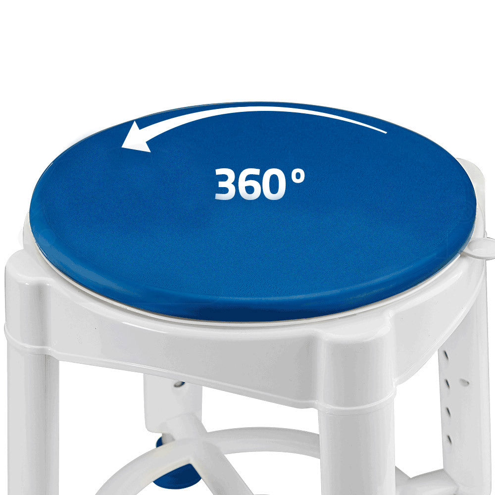 Enjoy extended maneuverability with the 360° swivel seat that easily clicks into position with the accessible lever action. Height adjustable legs with push button locks mean that it can be easily tailored to suit the individual user. The non-slip rubber feet ensure stability, allowing you to wash safely without worrying about the stool moving.