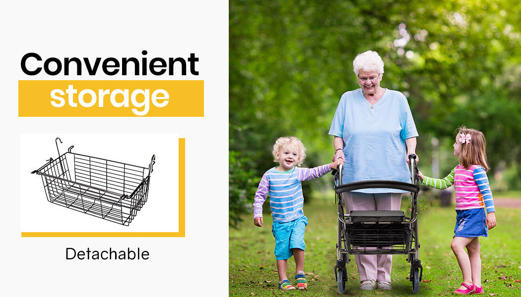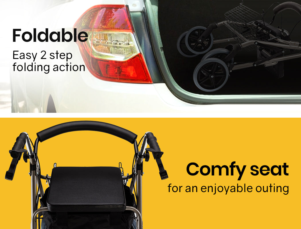Rollators are all about practicality, reliability, comfort and smooth mobility - and the eQuipMed ticks all the boxes. Not only does it feature an ultra-light anodized aluminium design, dual-action loop brakes and superior ergonomics; with a basket as well as a waterproof in-seat storage compartment, it also gives you plenty of room for shopping.