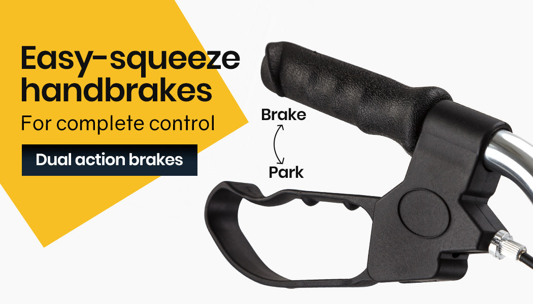 With dual-action loop handbrakes, adjustable handle height, ridged grips, padded seating and a padded contoured backrest, your EQUIPMED rollator offers great ergonomics and comfort.
