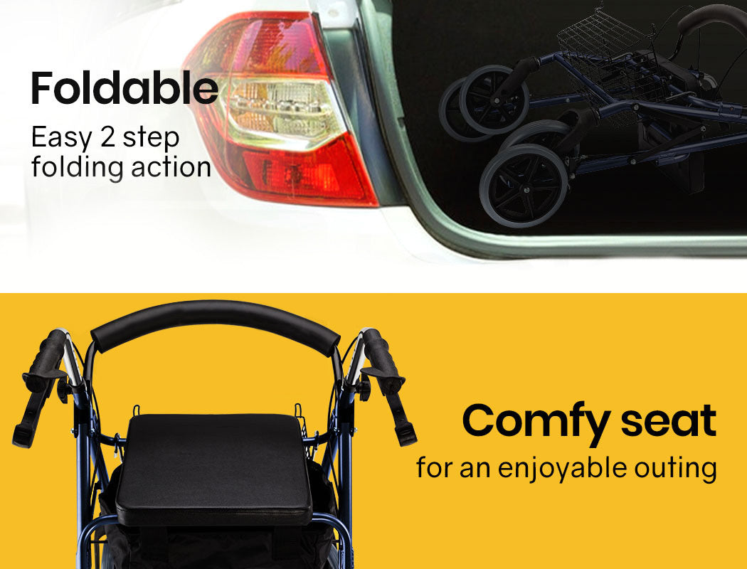 This high quality Equipmed rollator is easily foldable for practical storage and transport.