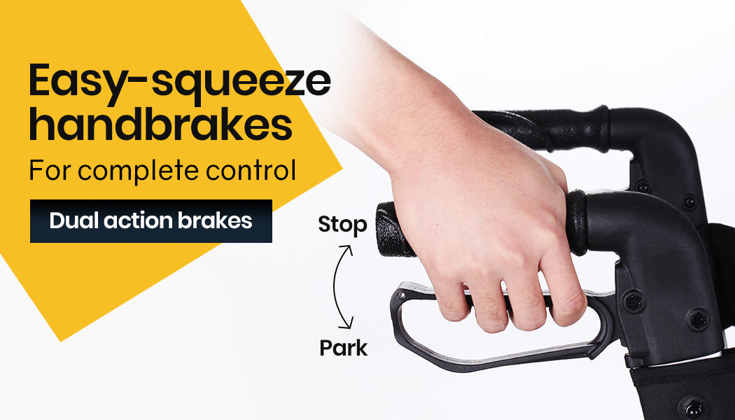 Venture outside on the large 8†wheels which are designed to roll smoothly over the bumps inside and outside, and have reflectors for peace of mind. The comfortable seat with padded back rest comes in handy when you’ve found a pleasant spot to watch the world go by, or perhaps simply feel like a rest when waiting in line. Simply push the handles down and the walker is locked into place.