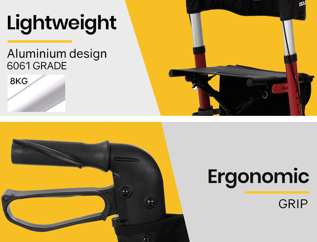 Practicality, reliability, comfort and smooth mobility is required to offer the freedom and confidence that is well deserved - and the Equipmed Easy Stride Rollator ticks all the boxes. Independence is only a step away thanks to the stylish ultra-light 8kg aluminium design with adjustable handle height. The handles themselves feature an ergonomic ‘winged’ design and easy-squeeze dual-action brakes. A detachable carry satchel allows for convenient storage of personal belongings and reading material.