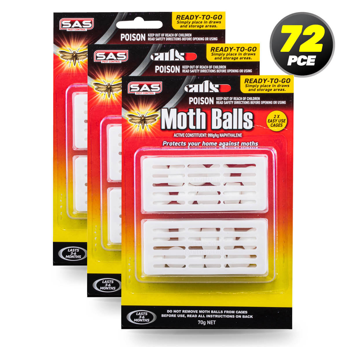 SAS Pest Control 72PCE Mothballs In Plastic Casing Fast Acting 35g
