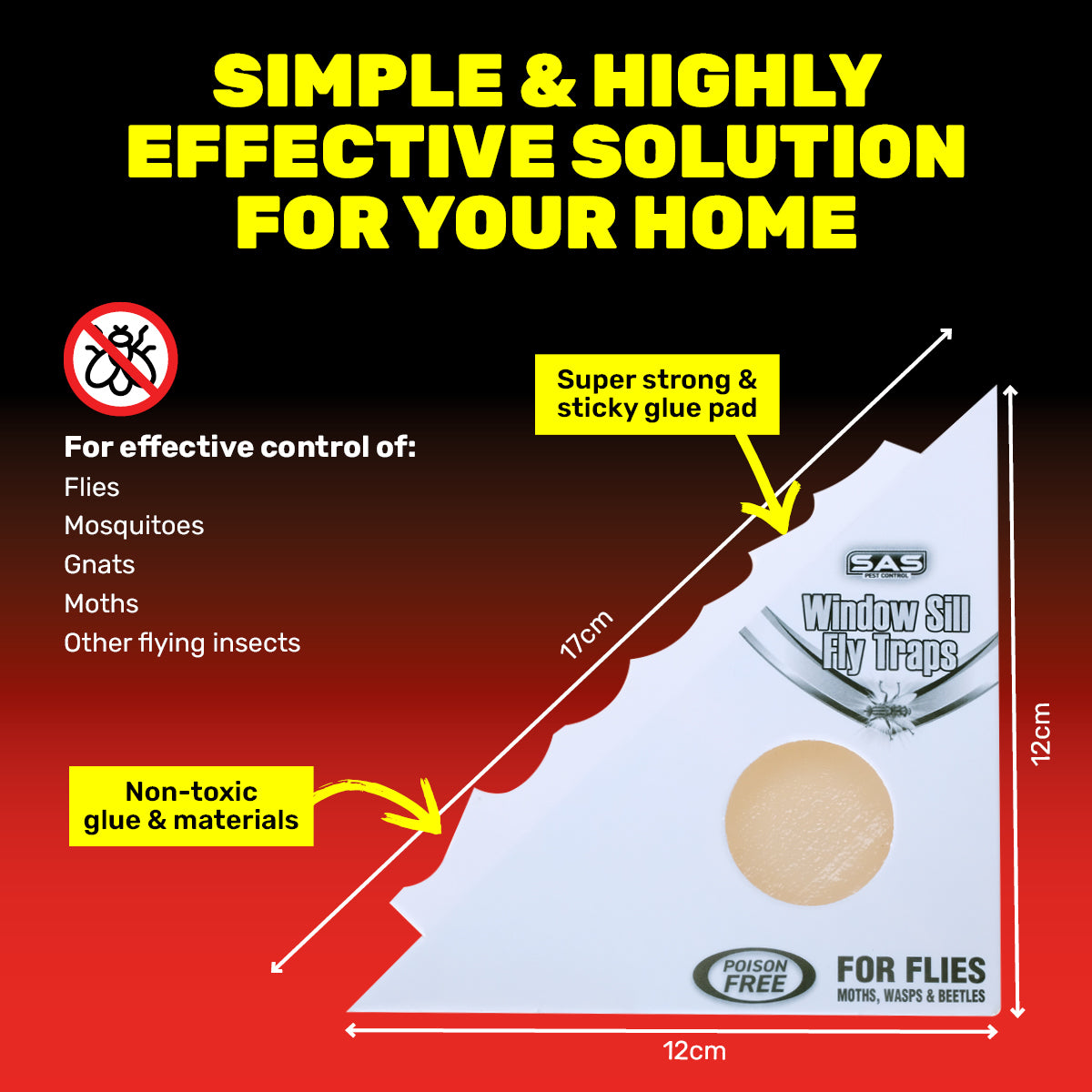 SAS Pest Control® Simple and highly effective, these ready to use and disposable traps sit neatly in window sills. Ideal to place around your home, garage, work and business environments to control flies, moths, mosquitoes, gnats and other insects.