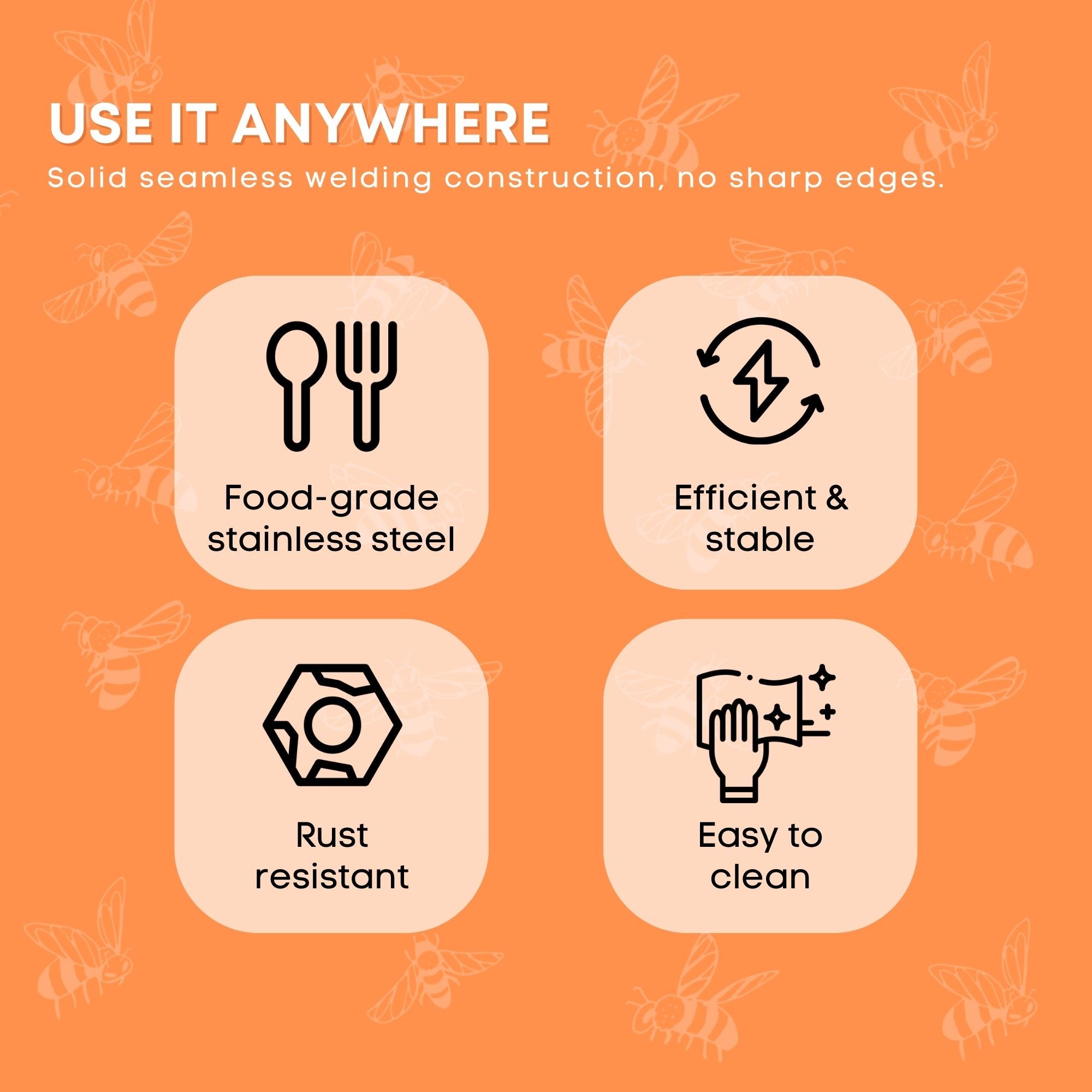The 2 clear acrylic lids allow easy inspection of the extraction process as you are harvesting the honey.