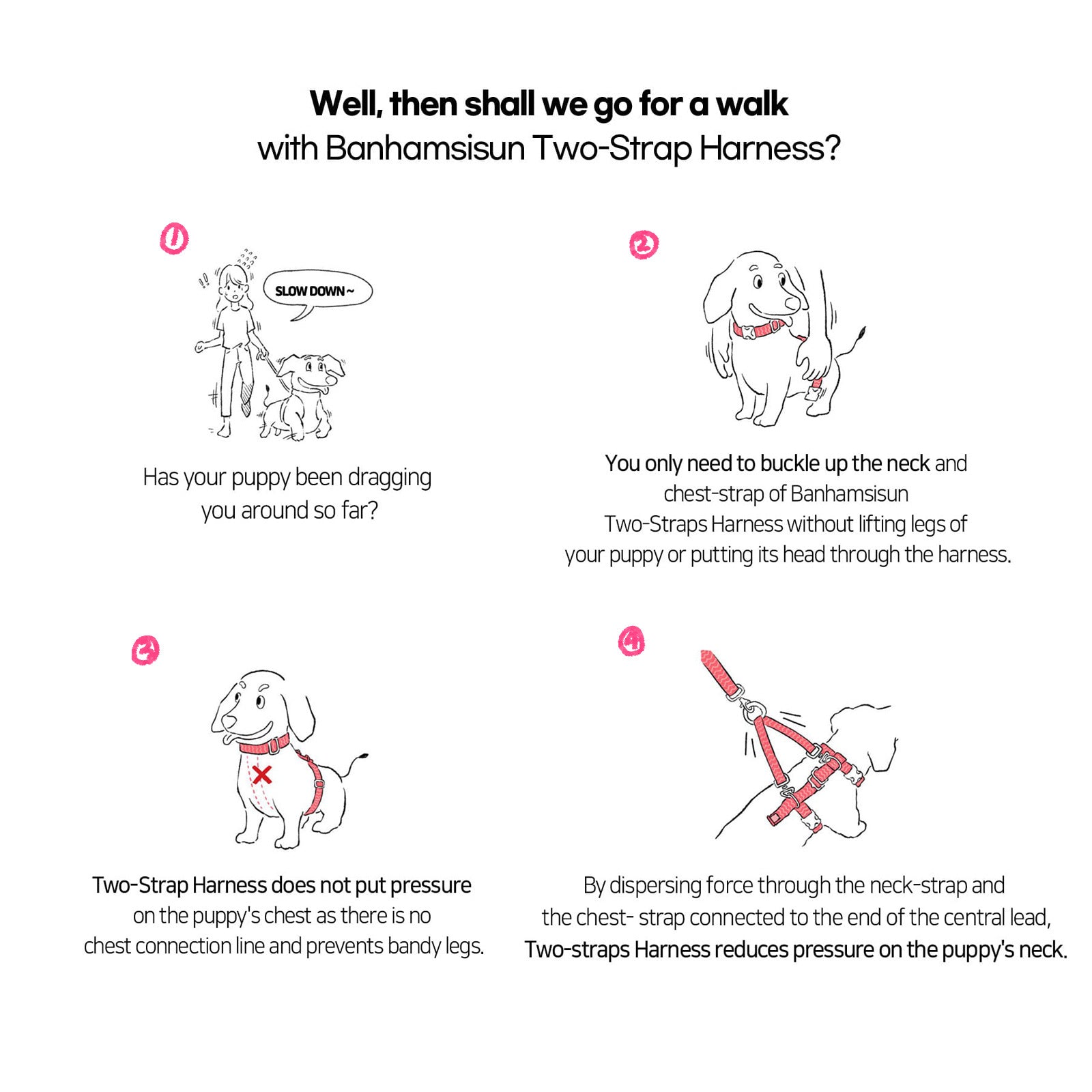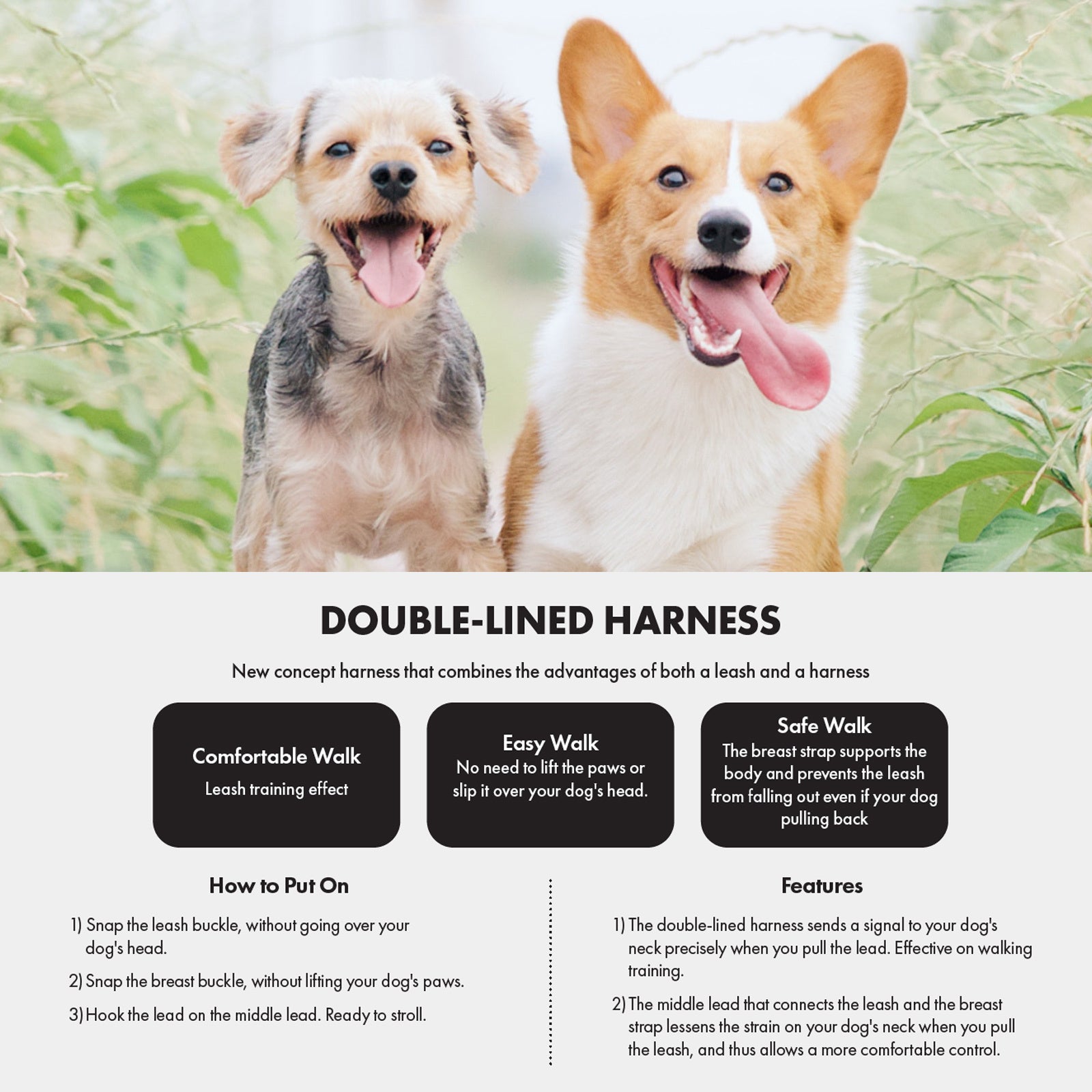 Tired of struggling with traditional dog harnesses that are hard to put on and uncomfortable for your pet? Upgrade to the Banhamsisun Double-Lined Harness and Lead Set, setting a new standard in comfort and convenience.