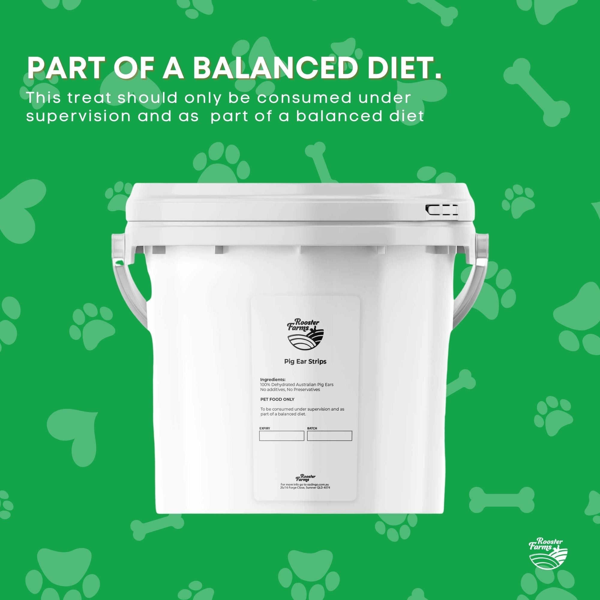 • Resealable bucket containing Pig Ear Strips