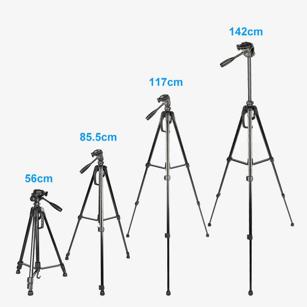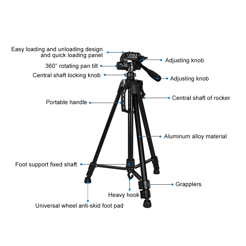 With a zipper carry bag for easy carrying and secure storage the tripod. In the package, you will get: 1 x camera tripod, 1 x carry bag, 1 x Bluetooth remote control, 1 x phone holder, We have provided 30 days of free returns, a 1-year warranty, 100% satisfaction, and prompt customer service.