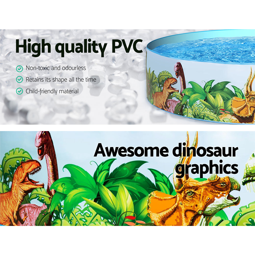 Designed for active 2-year-olds, the Bestway® Dinosaurous Fill-n-Fun Pool is a joy for them to have a splashing and soaking good time. The 1.83m x 38cm pool is made of rigid and heavy-duty PVC sidewalls permanently attach to the sturdy and inflatable vinyl bottom. And kids will love the dinosaur characters decorating the front walls of the pool. Setting up the pool is hassle-free and a drainage valve makes it even easier to drain and store till the next wet and wild day. An emergency repair kit is also included for fast patch-ups.