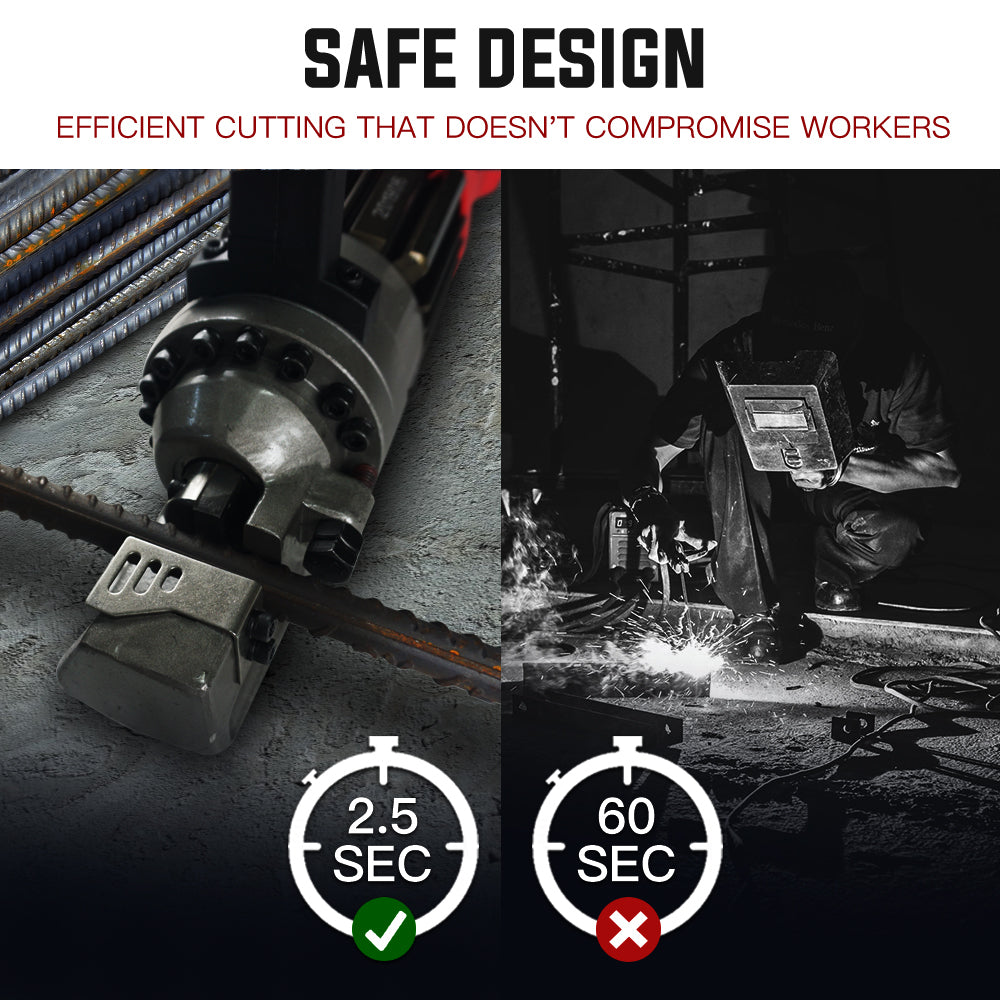 The demanding nature of Rebar cutting means it's vital that quality tools are used to do the job safely and efficiently. Baumr-AG's range of reo bar cutting and bending equipment certainly fits the bill. The commercial-grade Baumr-AG RB16T Hydraulic Rebar Cutter is a must have for any builder with its tough body with a very portable weight of 9.5kg. The top handle design allows it to be carried around the site with ease, and be positioned on the ground or a bench ready for operation.
