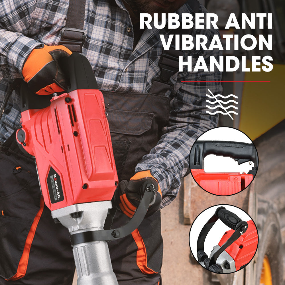 The Baumr-AG BMJK-23S 2300W Mk II Pro-Grade series Jackhammer is a full commercial grade unit with a precision wound copper induction motor. It combines a hardened steel crank and reduction gear set only found in the highest quality professional grade tools, making it one of the few Jackhammers of this calibre you will find. The benefit of this combination along with the hardened steel body is less vibration and more efficient energy transfer, giving the BMJK-23S greater impact force at the ram head - a truly fantastic machine!