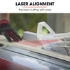 The Baumr-AG doesn’t stop at the simple jobs. You get triple reassurance getting your cut right with a +/-45° smooth sliding pre-marked mitre jig, and the premarked 0-45° blade bevel adjustment means that this formidable machine can also handle any compound cuts you may have. A laser cutting guide gives you peace of mind when aligning your cuts! The adjustable aluminium guide fence mounts easily to either side of the cutting deck for even more assistance.