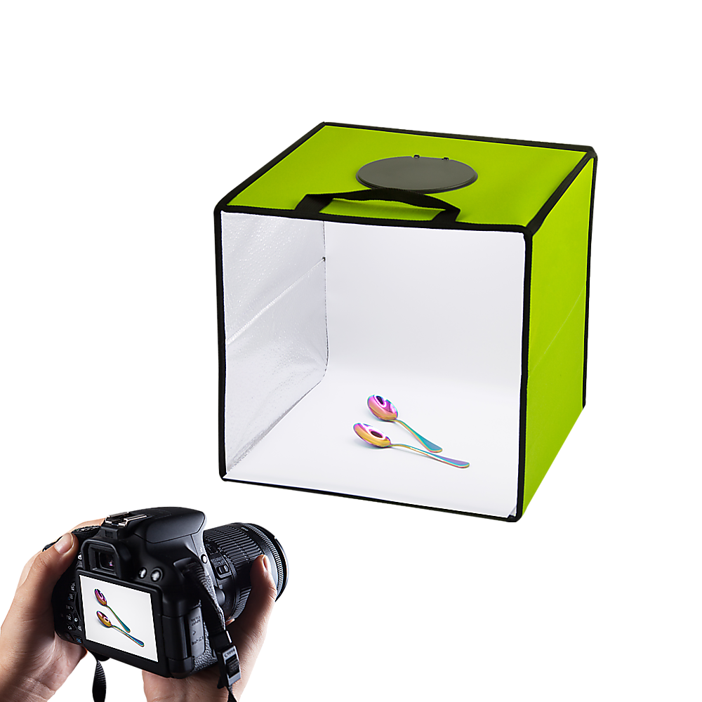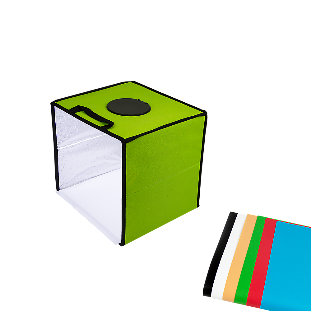 It's easy to assemble in only a few seconds, so you can get it up and running in no time. And, it folds up so it's easy to carry everywhere you go. With its built-in LED light, it provides optimum lighting, reducing shadows and reflections. Its stone-grain fabric gathers light, distributing it throughout the box with a three-dimensional effect to highlight your photo's subjects.