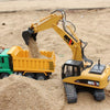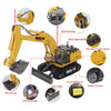 1:16 2.4GHz 11CH RC excavator shows you the power and flexibility of the mechanism Arm. Features Mechanical Sound / 680-degree Rotation Cabin / Movable Stick Boom Bucket, creating a true-to-life scene. Heavy-duty alloy die-cast parts with strong mechanical arms. You can set up an awesome miniature construction site in your backyard