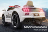 The Mustang Style Police Car features soft start which provides sensible acceleration. A 12V battery and twin motors offer unmatched range. The large wheels sport a rubber grip to stick to slippery surfaces and features a suspension to absorb harsh terrain.