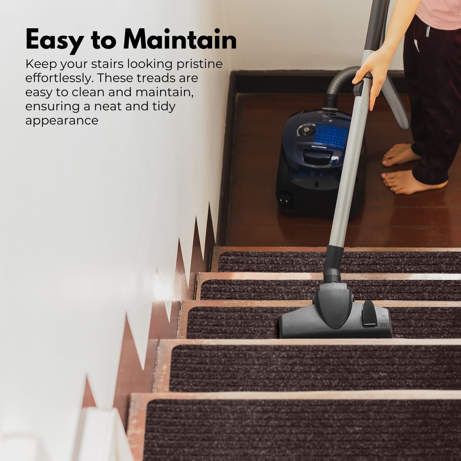GOMINIMO Set of 15 Non Slip Carpet Stair Tread 20.3 x76cm (Brown)
