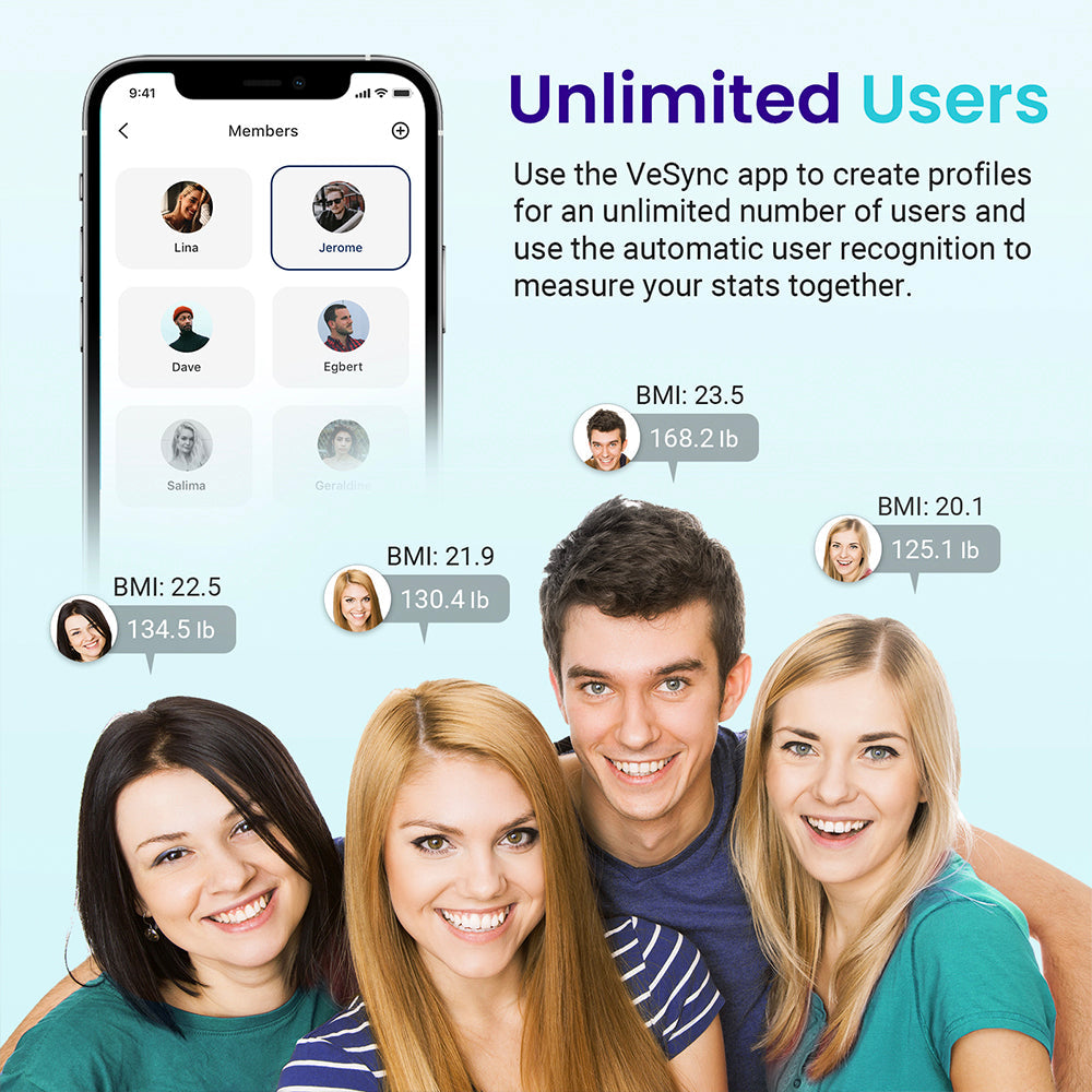 Designed for convenience, the scale's sleek 30 x 30 cm slim design makes it a seamless fit in any space. The clear LED display (7.4 x 3.3cm) offers easy readability, enhancing your monitoring experience. Seamlessly sync your data via the VeSync App, providing you with a comprehensive overview of 13 different health metrics.
