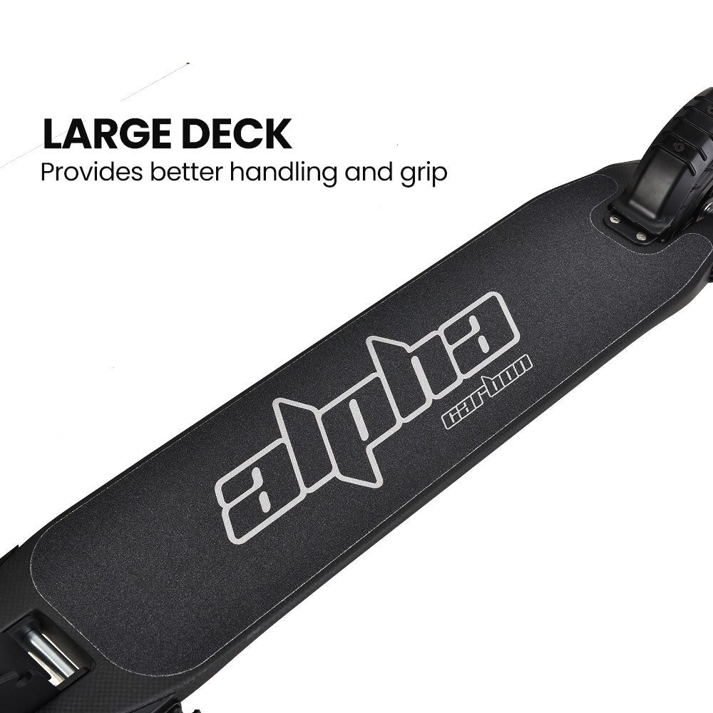 At the heart of the Carbon is its quality 10Ah battery array in the carbon fiber stalk you can enjoy a serious range of up to 20km. Select from one of the 3 speed modes, and thanks to the high-power 300 watt brushless motor you will experience exhilarating acceleration.