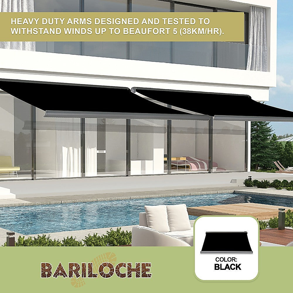 Bariloche retractable awnings are operated by wireless remote control (included) with a powerful 50 Nm tubular motor hidden within the roller tube.