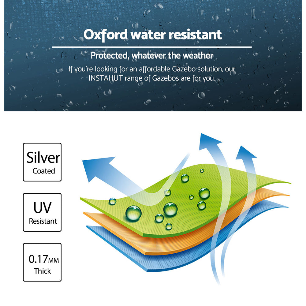 Ideal for outdoor weddings, sports events, trade shows, market days or camps, the INSTAHUT Gazebo is your premium quality shelter at an affordable cost all year round.