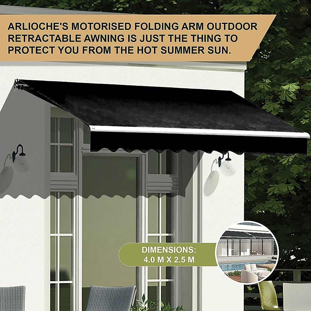 With summer just around the corner, it's time to start preparing your home to handle scorching heat and the sun's incessant rays. Bariloche's 4.0 m x 2.5m folding arm outdoor retractable awning is just the thing to protect you from the hot summer sun. Since it folds up easily with only the turn of a hand crank when you don't need its protection, you can retract it when you want more sunshine. Wall brackets make for easy installation, yet we do recommend you use a professional installer to make sure the installation is done right.