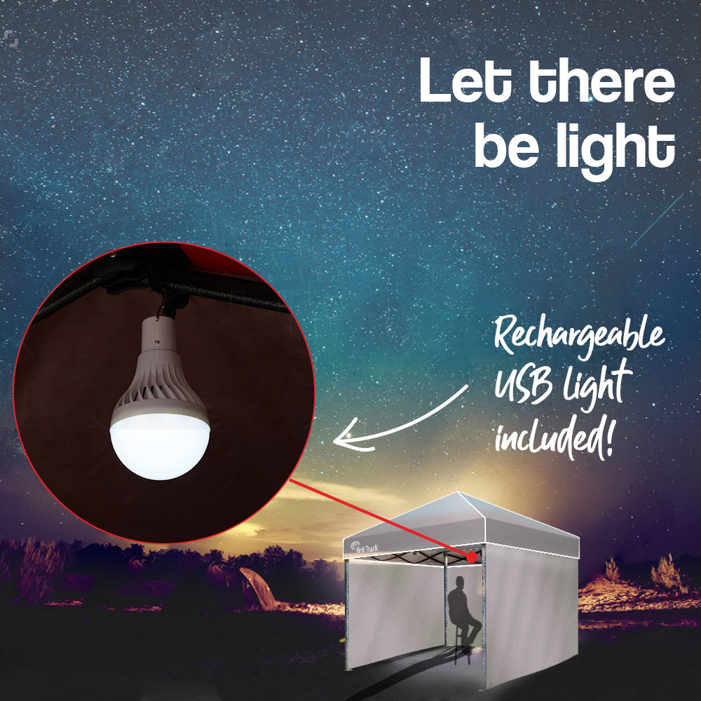Once the event is done, dismantling is a cinch as the Red Track folds away neatly into the most compact package and fits into its included carry bag, ready to be tucked away in the backseat or boot of your car. And when festivities extend into the night, the included rechargeable lamp and walls for 3 sides makes sure that you're protected and well lit until the close of your event.